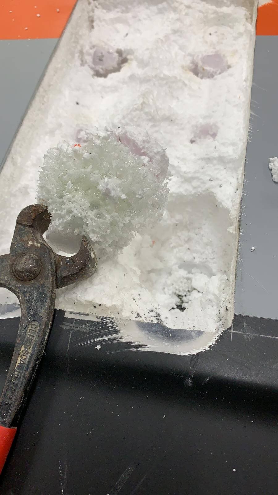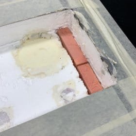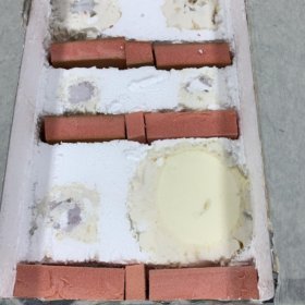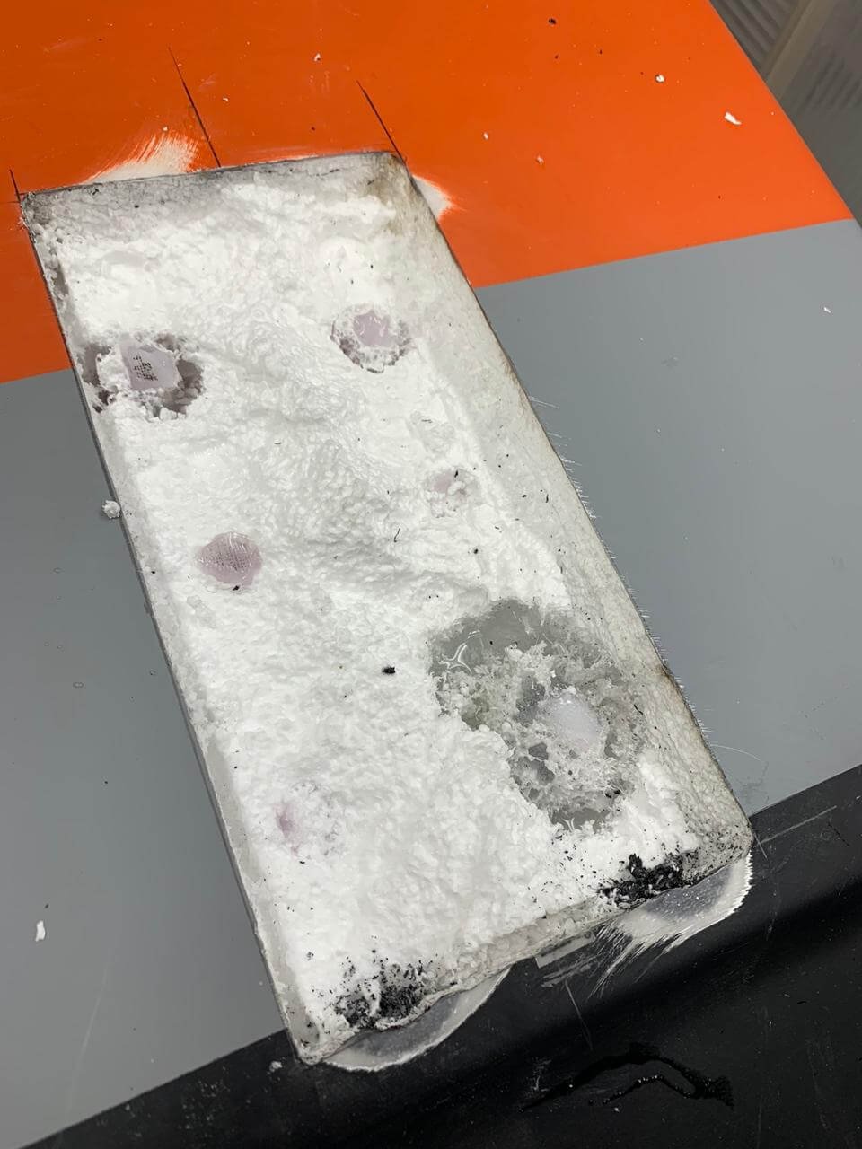 After opening the board,  we found that those who installed the boxes, only poured resin inside the EPS to “support” the boxes, during the catalysis, especially if concentrated in small spaces the resin warms and tends to burn the EPS, creating empty spaces.